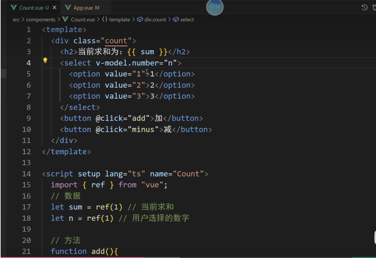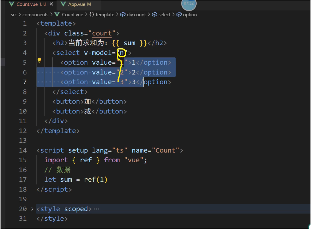 // 2, 选项式API写法 配置对象写法