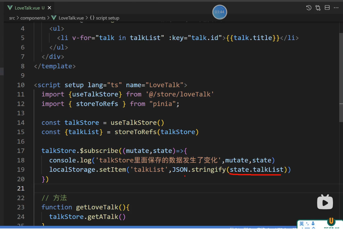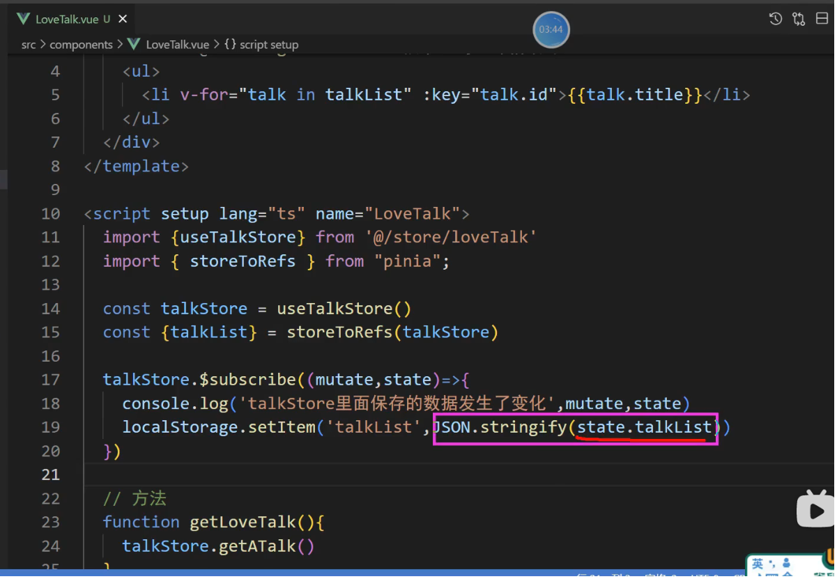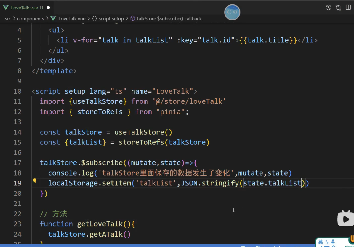 // talkStore.$subscribe((mutation, state) => {