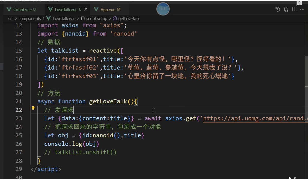 // let {data: {content:title}} = await axios.get('https://api.uomg.com/api/rand.qinghua?format=json&charset=utf-8')