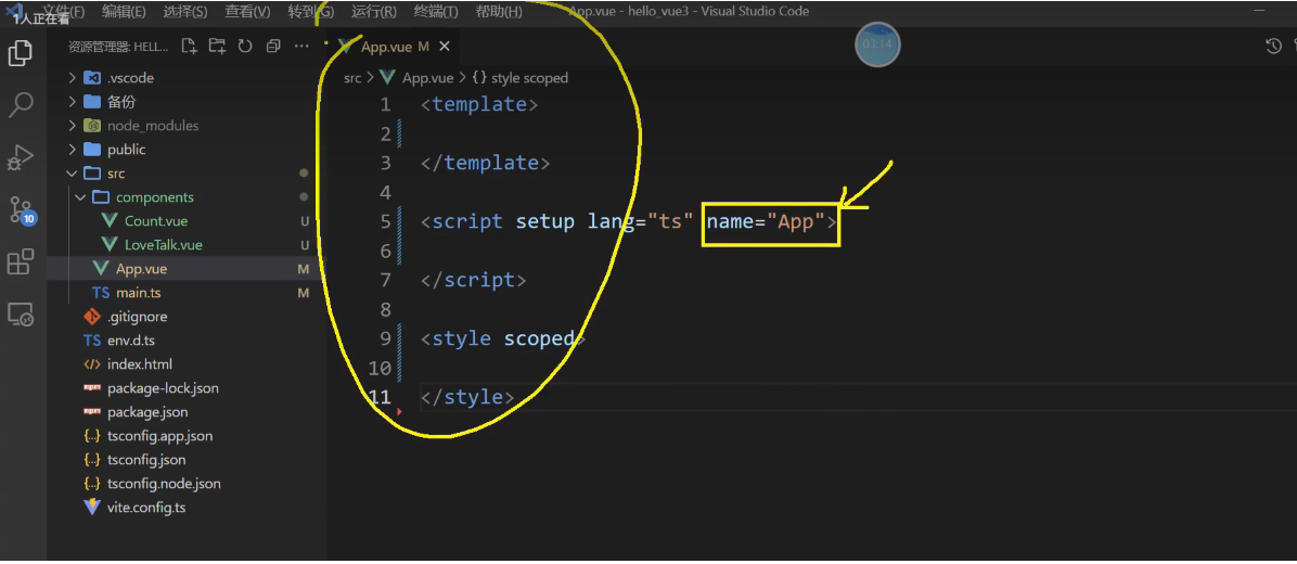 name="App" 这个name是用来定义当前组件名字的,如果你不写,他就会去寻找文件名作为组件名