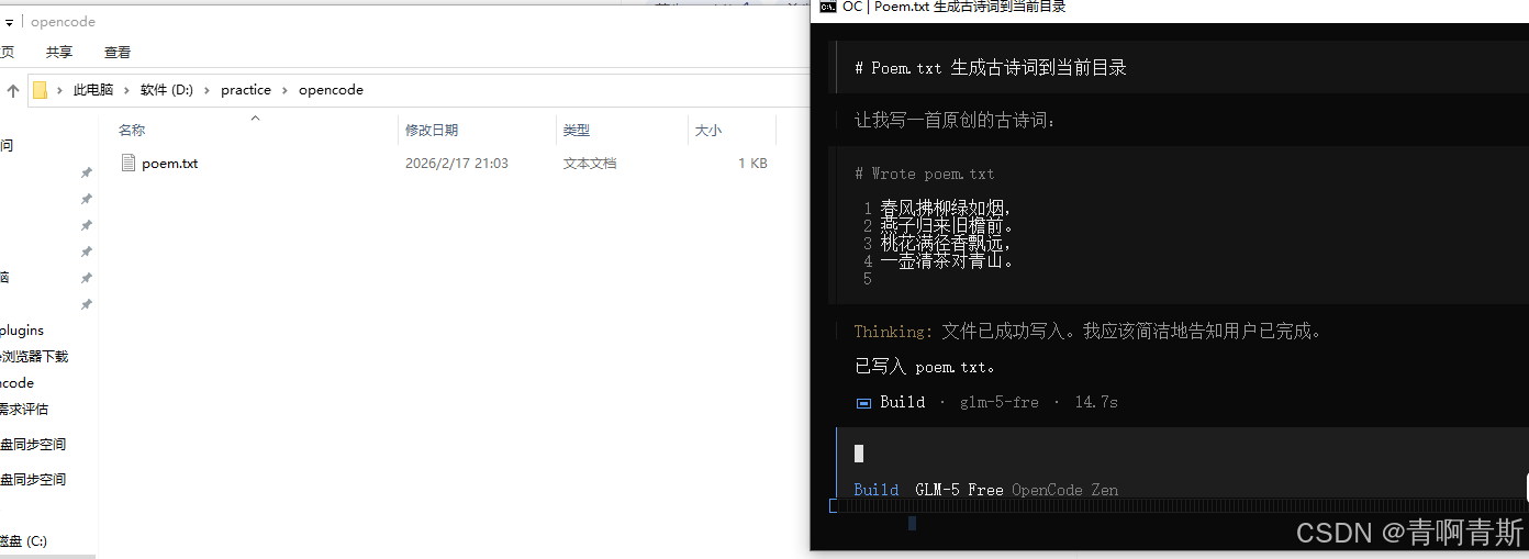 - 操作词:写一首古诗词,到当前目录的poem.txt文件