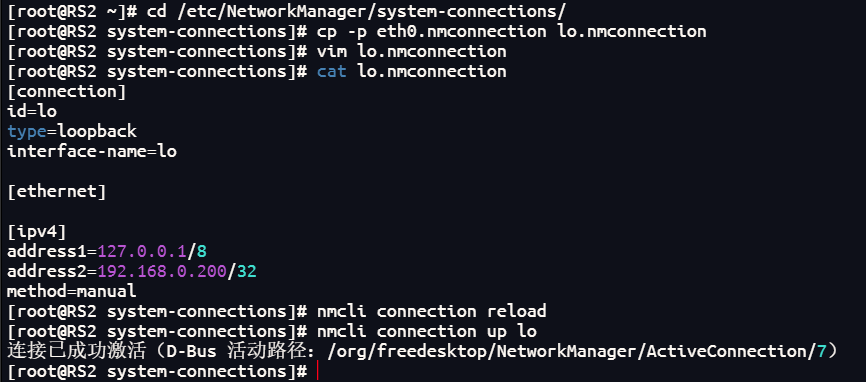 RS2在lo上设定vip: