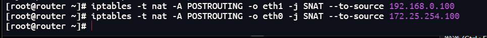iptables -t nat -A POSTROUTING -o eth1 -j SNAT --to-source 192.168.0.100
