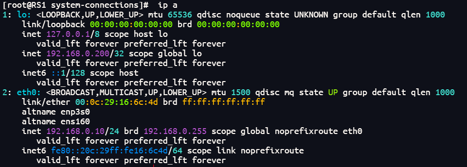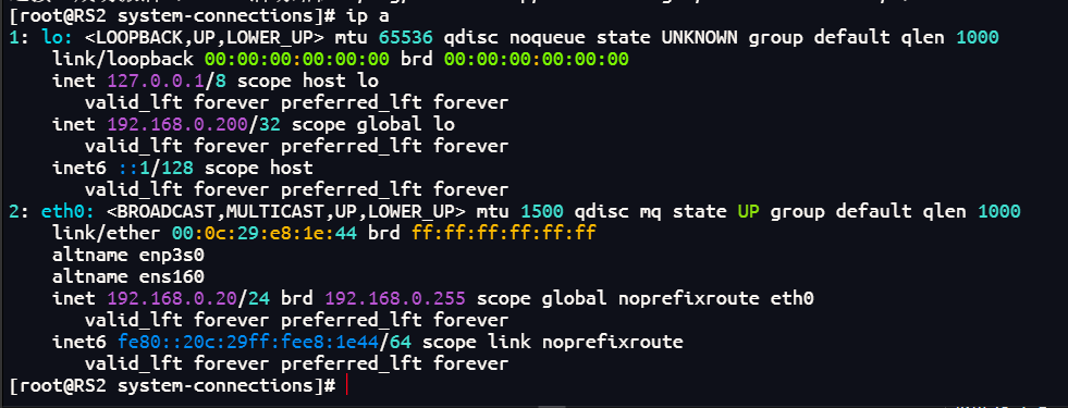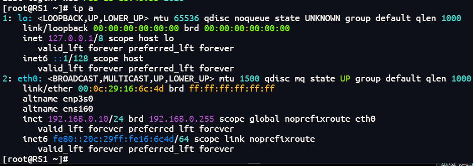 RS1在lo上设定vip: