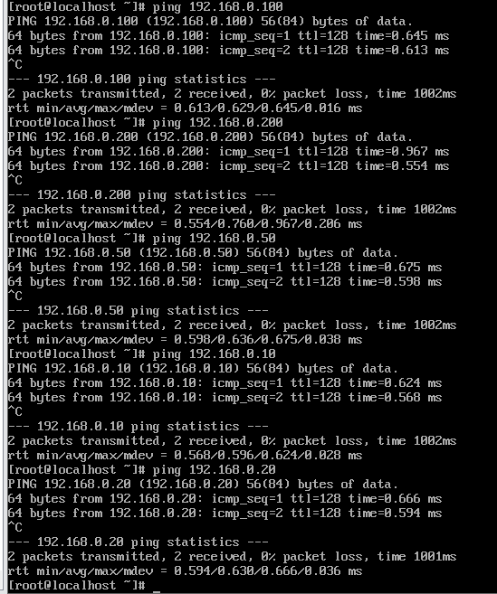 测试全网可达: