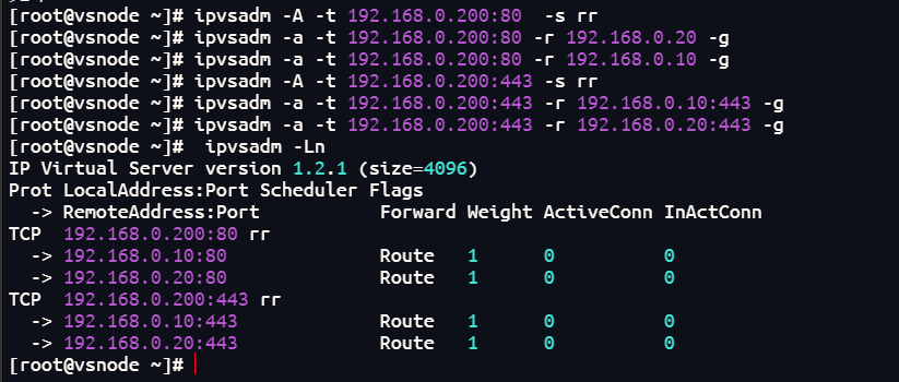 ipvsadm -a -t 192.168.0.200:80 -r 192.168.0.10 -g