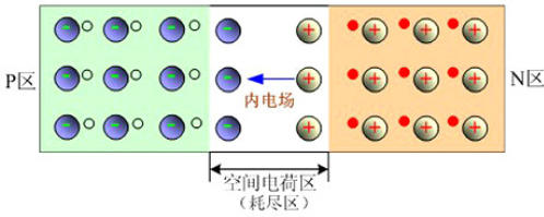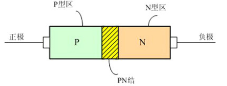 将 P 形和 N 型半导体连在一起,电子填满 P 型半导体的空穴,即可构成二极管: