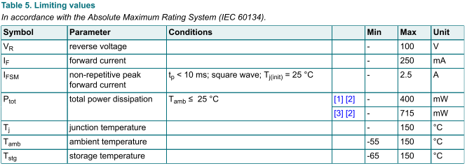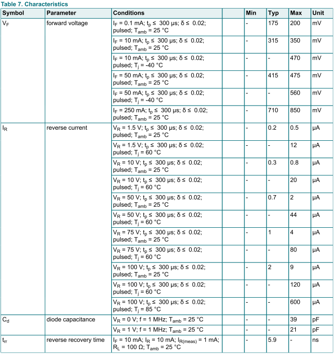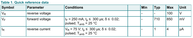 这个要特别考虑,如上图, Vfmax=0.6V@If=200mA,指的是正向电流在200mA时,二极管正向压降最大不超过0.6V。