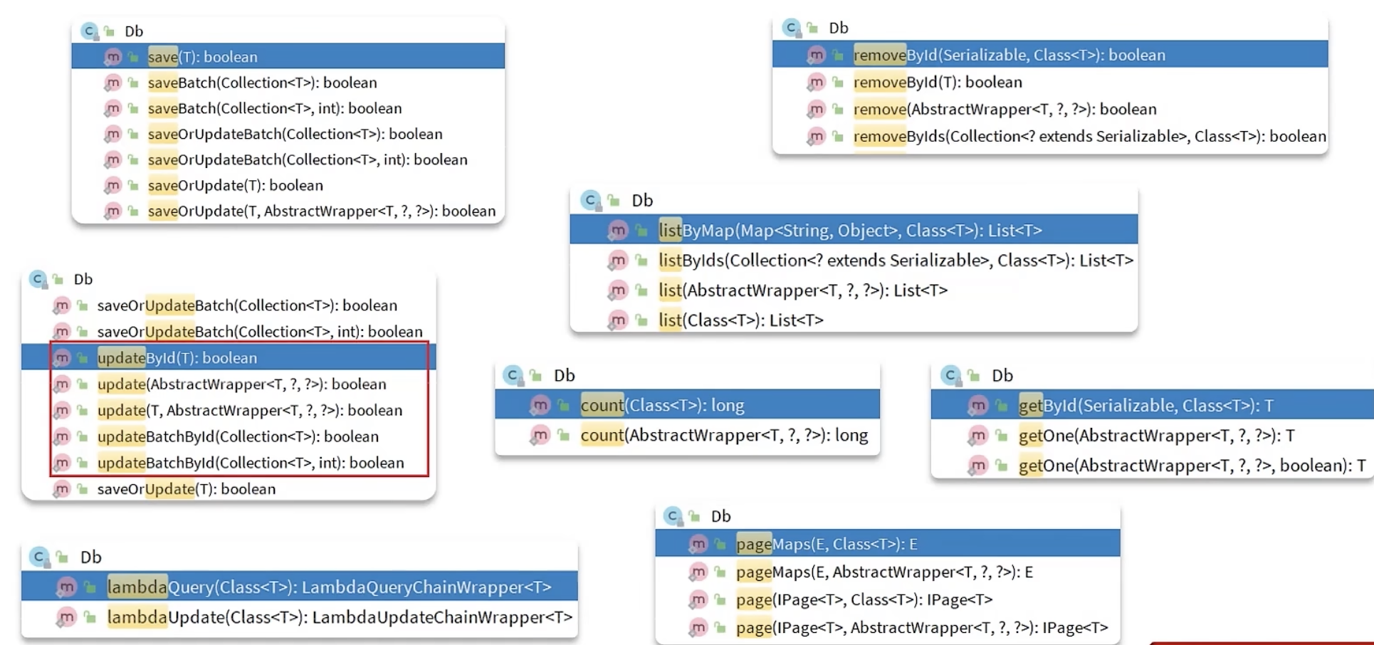 Db 是 MyBatis-Plus 3.5.4+ 提供的静态工具类,无需注入 Service 或 Mapper,直接通过静态方法操作数据库。本质上是对 IService 的静态封装。