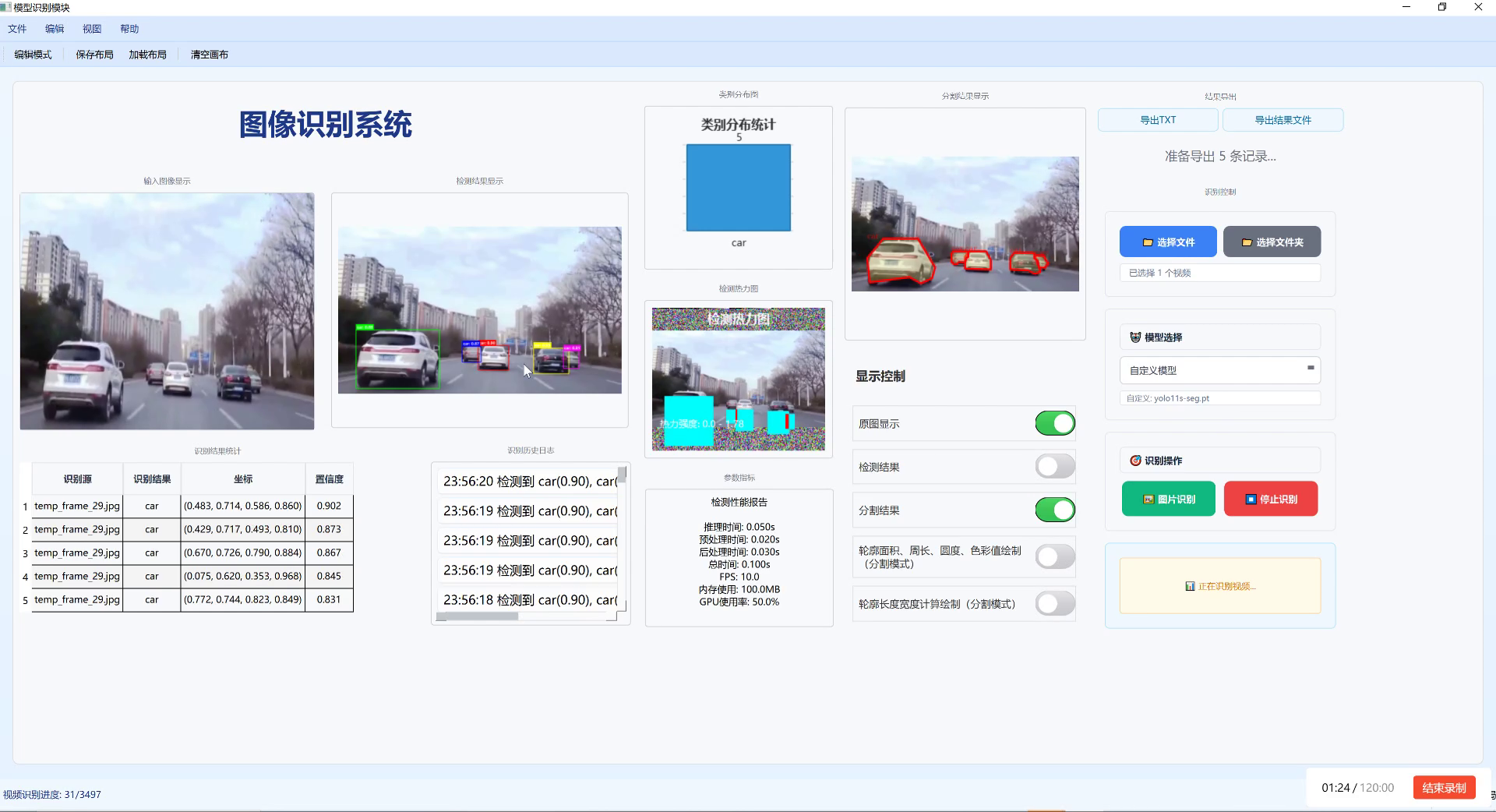 这是一张花生检测与识别任务的性能测试报告截图,清晰呈现了系统运行的关键性能指标。报告中包含推理时间41.9ms、预处理时间8.7ms、后处理时间7.1ms、总时间49.9ms,FPS达60,内存使用925MB,GPU使用率86.5%。这些数据反映了系统在执行花生检测与识别时的效率表现:高FPS保障实时性,合理的时间分配体现各环节优化效果,内存与GPU资源占用情况反映硬件适配度。该报告为评估花生检测系统的实际应用能力提供了量化依据,助力判断其在农业生产场景中部署的可行性------如是否能满足田间实时监测需求,是否需进一步优化资源消耗等,是技术迭代和场景落地的核心参考文档。