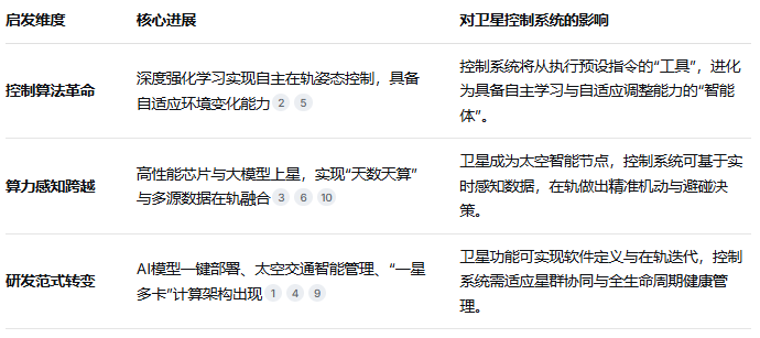 过去一年AI的发展带来的最大启发是:卫星控制系统正在从被动的、基于模型的设计,转向主动的、基于数据的智能体设计。 作为研发人员,我们需要跳出传统GNC的框架,积极拥抱深度强化学习等新型控制理论,深入理解星载AI算力的应用场景,并从系统角度思考如何设计一个能够与环境交互、自我进化、并与整个智能星座协同工作的控制系统。