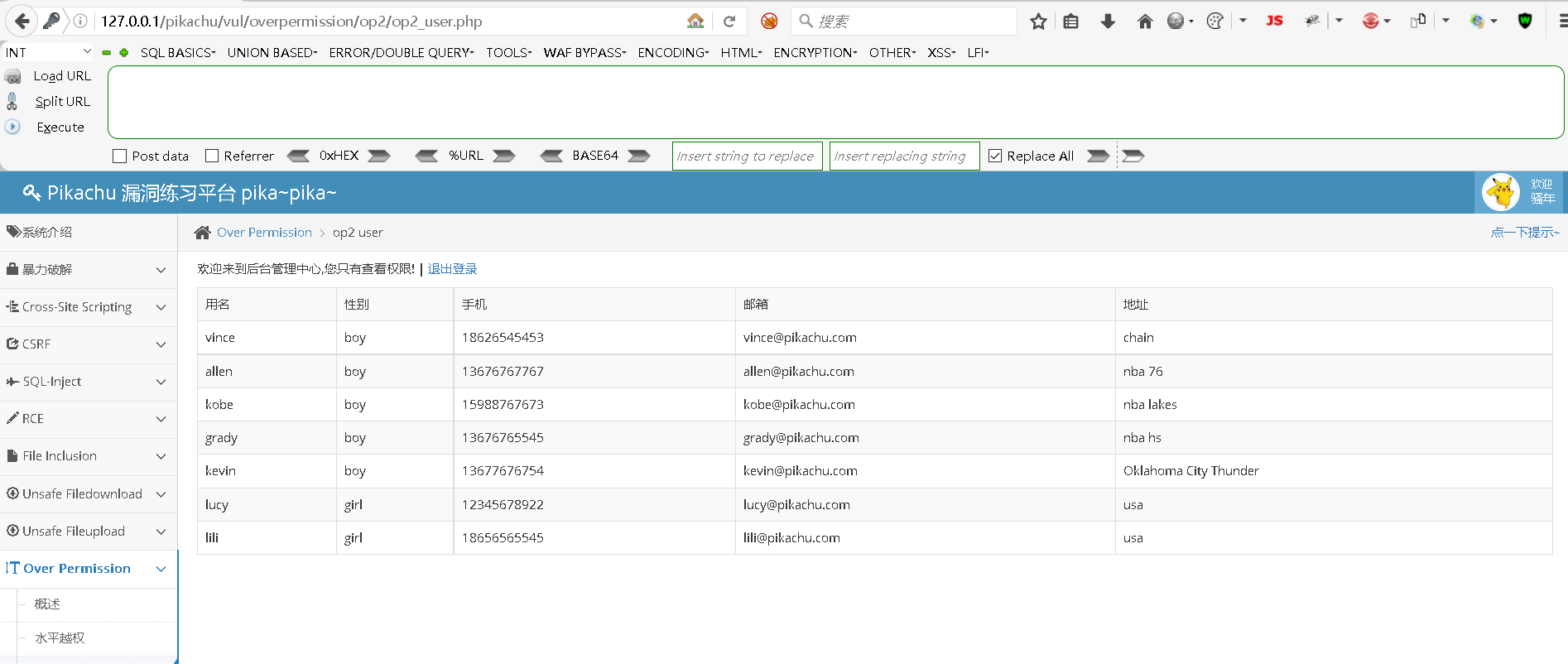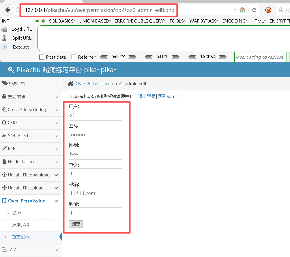 127.0.0.1/pikachu/vul/overpermission/op2/op2_admin.php