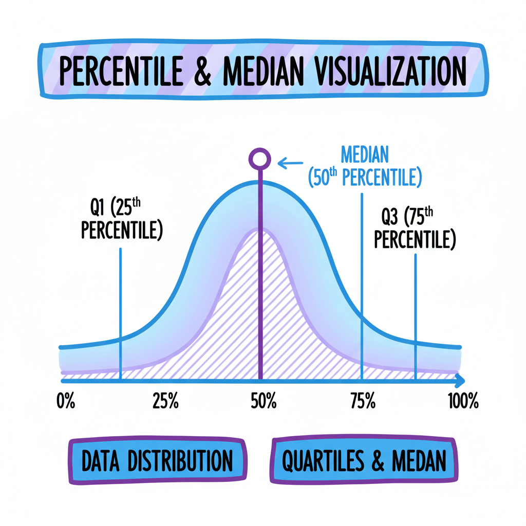 在分析数据时,平均值可能会产生误导。少数异常值会显著扭曲均值。这就是为什么专业人士依赖中位数 和百分位数来获得更稳健的洞察。