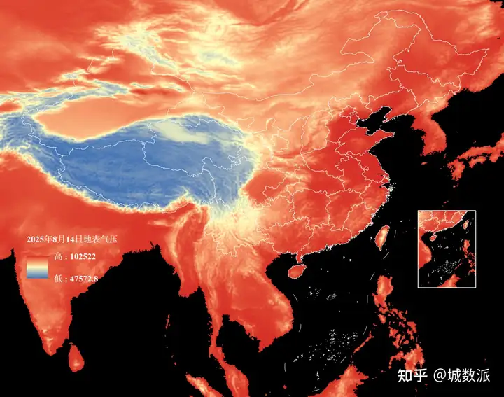 我们以2025年8月14号的地表气压栅格数据为例来预览一下数据,如下图: