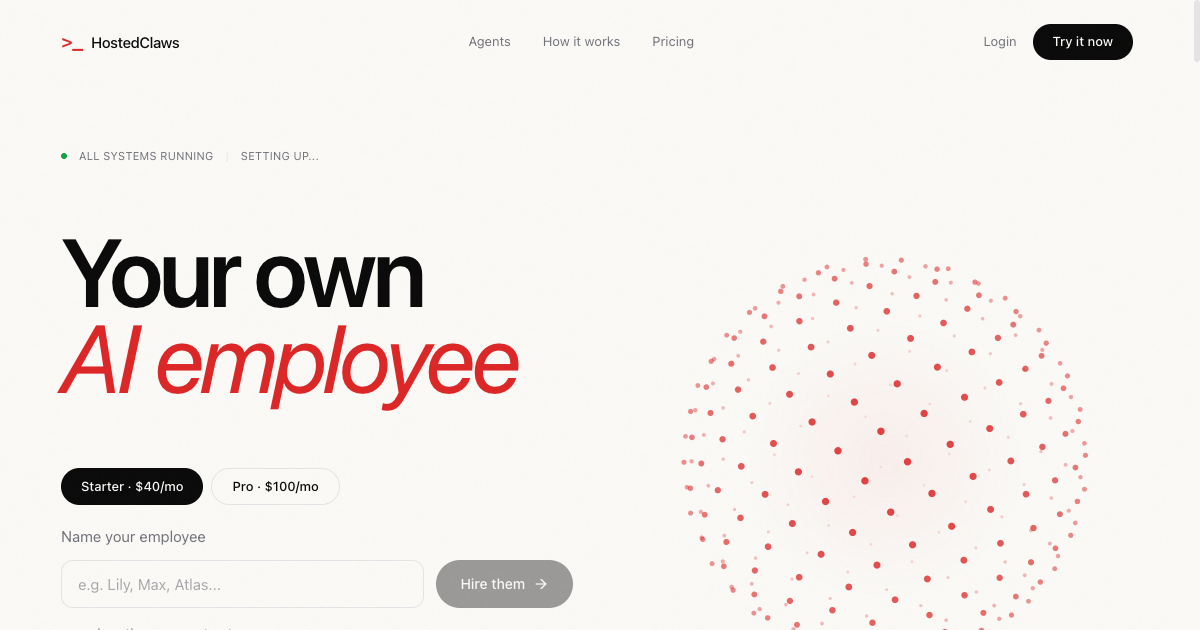 介绍:大多数人都知道人工智能可以帮助他们的业务,但不想费心处理服务器、API或那些复杂的技术问题。HostedClaws 提供了一个个人AI助手,它会在 Telegram 上全天候工作------帮你处理邮件、安排日程、进行研究和写作。费用从每月40美元起,无需技术技能。设置只需5分钟。你可以像和朋友聊天一样给它发消息,比如"把我下午3点的会议改到星期四"、"给那个失联的客户发一封跟进邮件"、"总结一下我未读的邮件。"