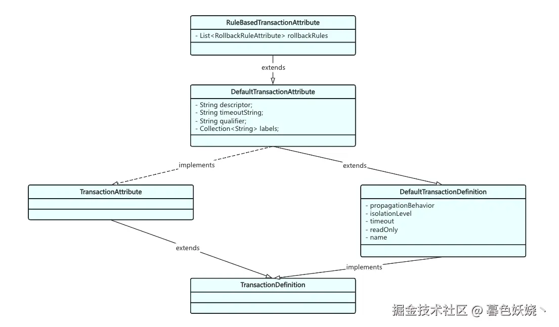 这个类是事务执行监听器,它是 Spring 6.1 版本新增的功能,它的功能和 TransactionSynchronization 有些类似,也是在事务的不同阶段执行一些回调方法