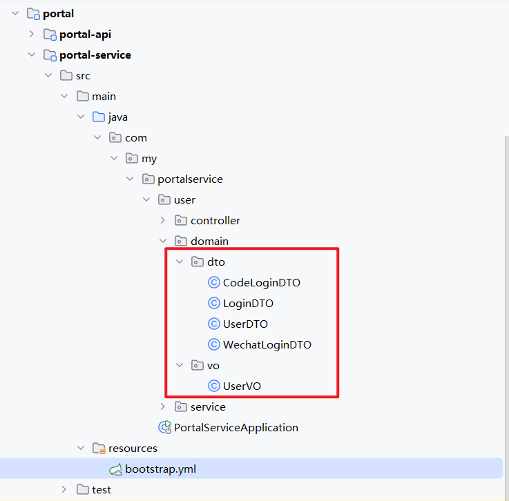1.2.2 在 domain 下创建 portal 模块需要的dto、vo