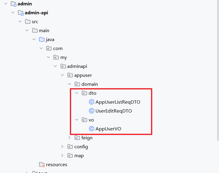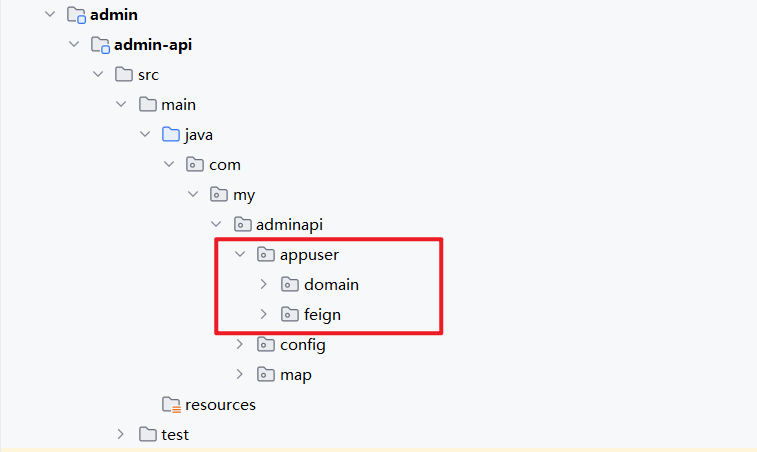 1.2.1 在 admin-api 在创建 appuser 包并创建domain、feign包