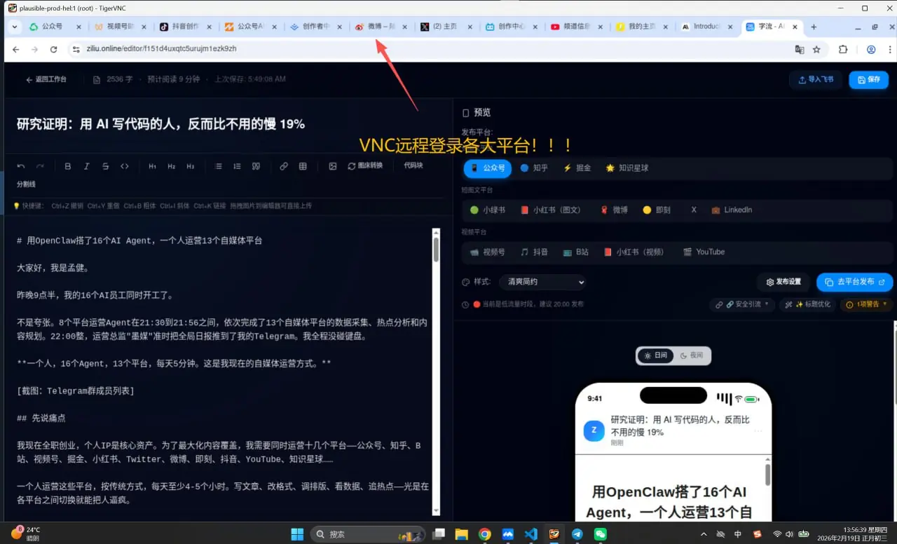 我现在全职创业,个人IP是核心资产。为了最大化内容覆盖,我需要同时运营十几个平台------公众号、知乎、B站、视频号、掘金、小红书、Twitter、微博、即刻、抖音、YouTube、知识星球......