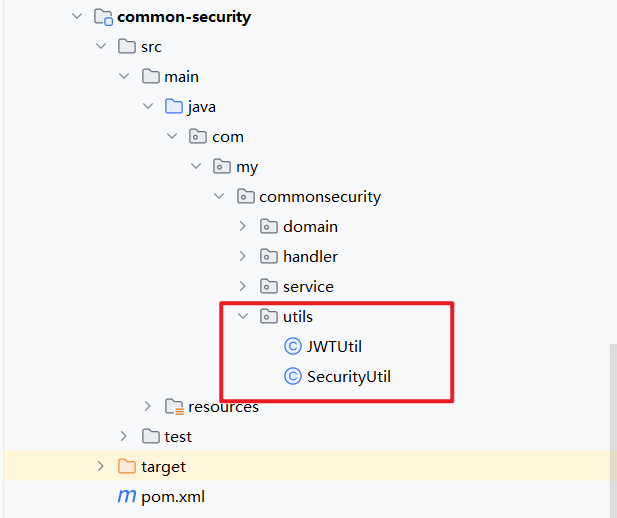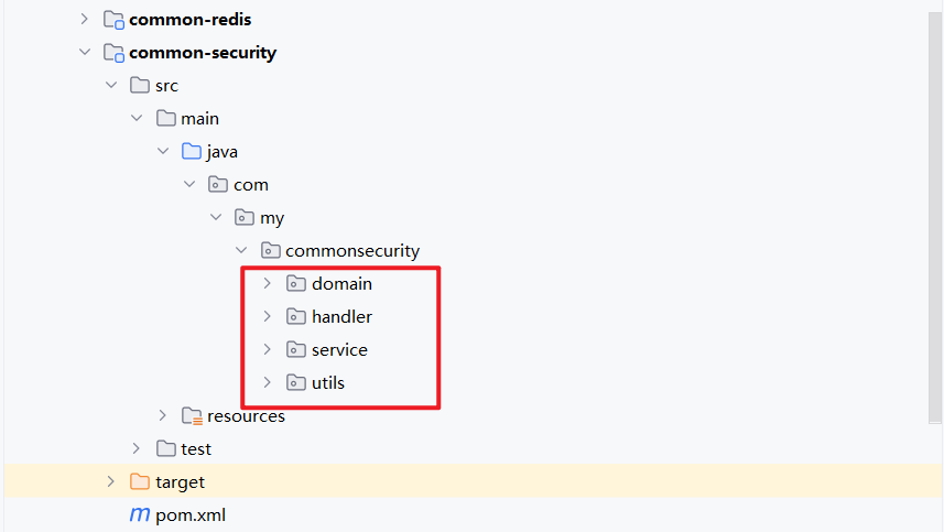 2.1 在 common-security 下创建 domain、service、utils包