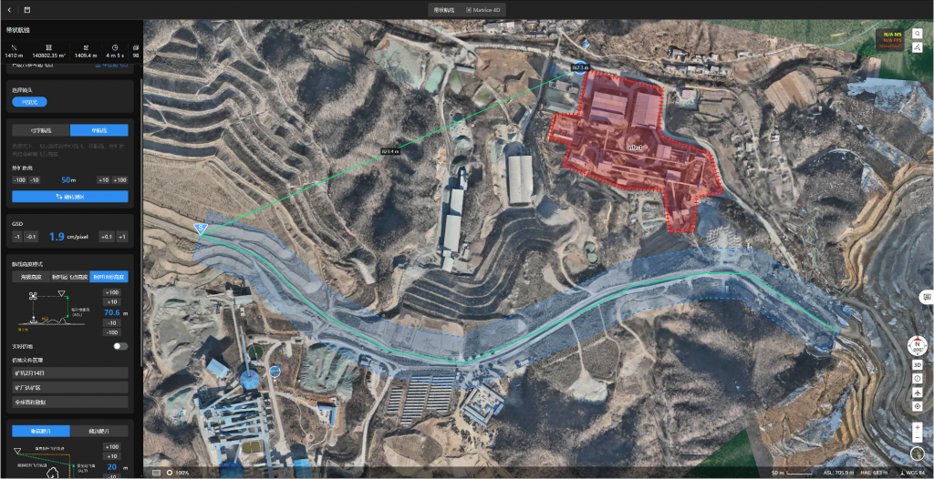 作业模式: 无人机搭载高清红外/可见光双光相机,按照预设的3D航路自动飞行。