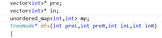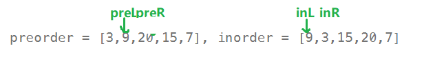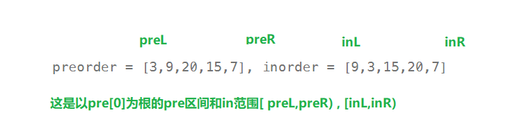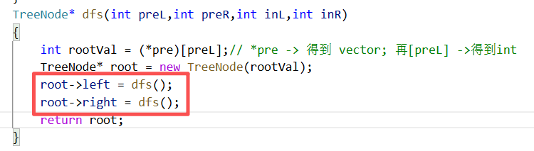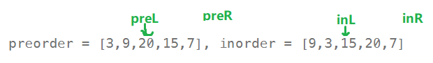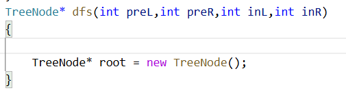 TreeNode* dfs(int preL,int preR,int inL,int inR)