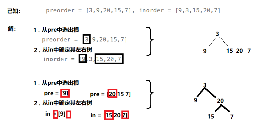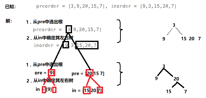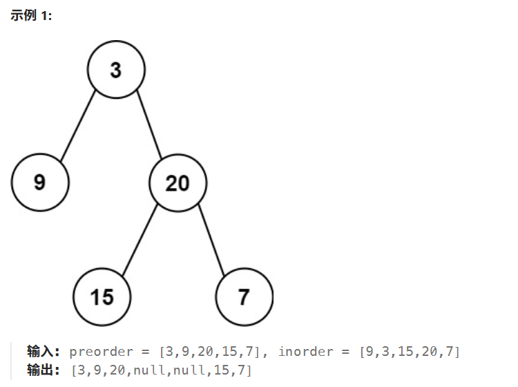 1 <= preorder.length <= 3000inorder.length == preorder.length-3000 <= preorder[i], inorder[i] <= 3000preorder和inorder均 无重复 元素inorder均出现在preorderpreorder保证 为二叉树的前序遍历序列inorder保证 为二叉树的中序遍历序列