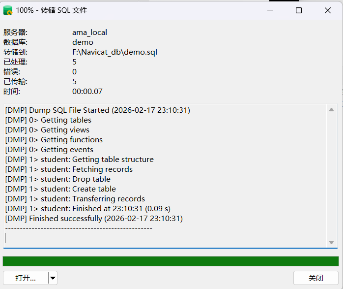 步骤 4:导出数据为 SQL 文件(如 demo.sql)