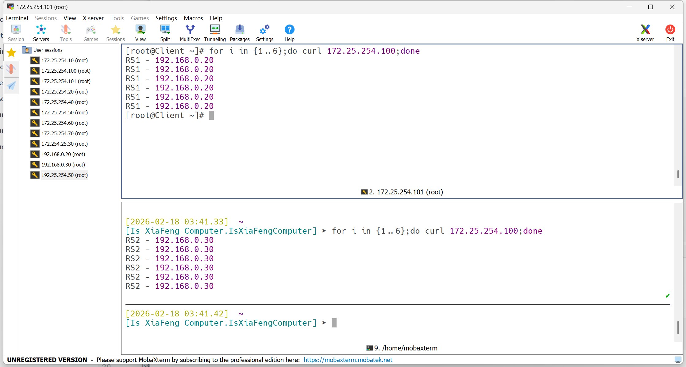 [root@Client ~]# for i in {1..6};do curl 172.25.254.100;done