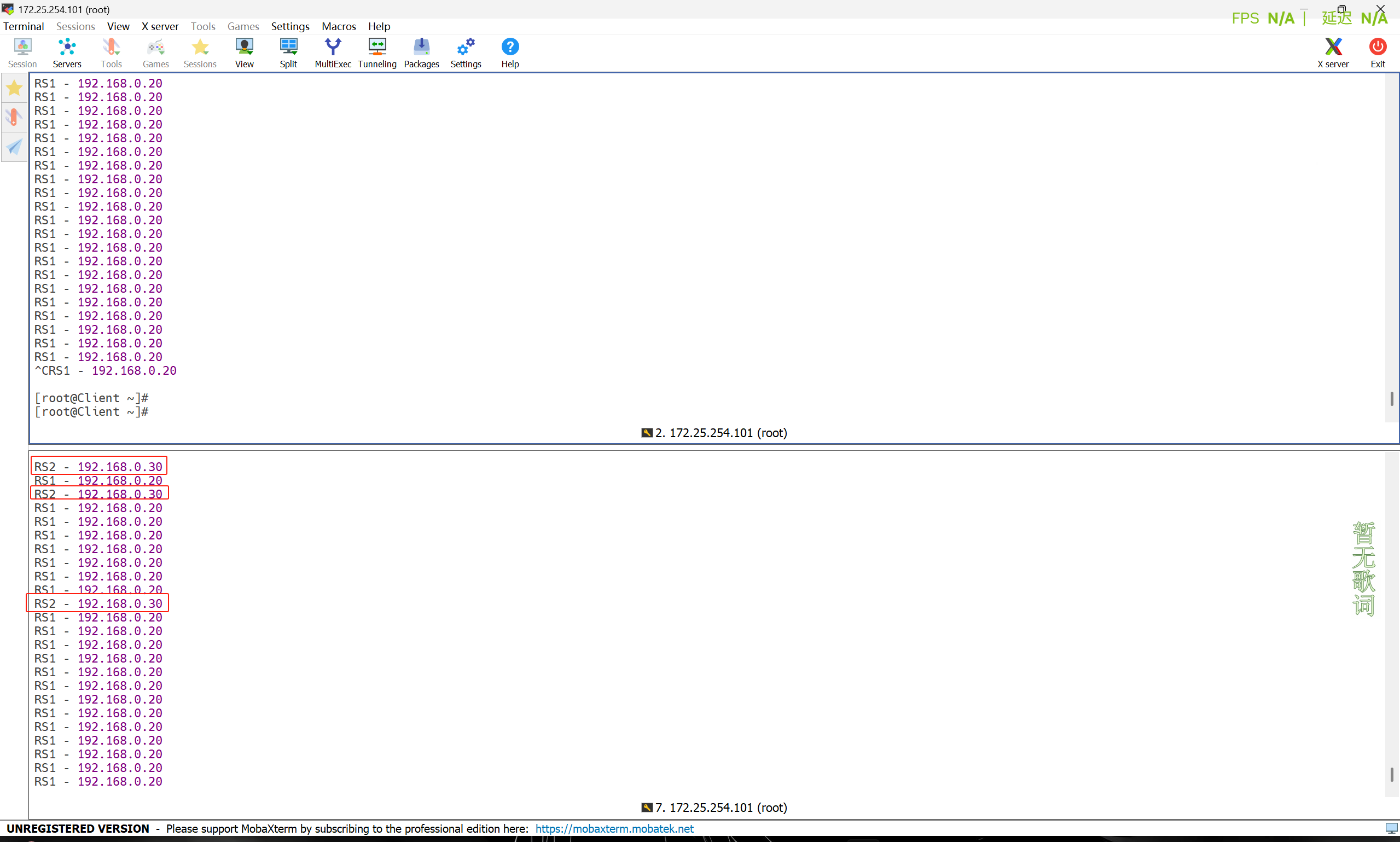 [root@Client ~]# for i in {1..4};do curl 172.25.254.100/index2.html?name=xixi;done