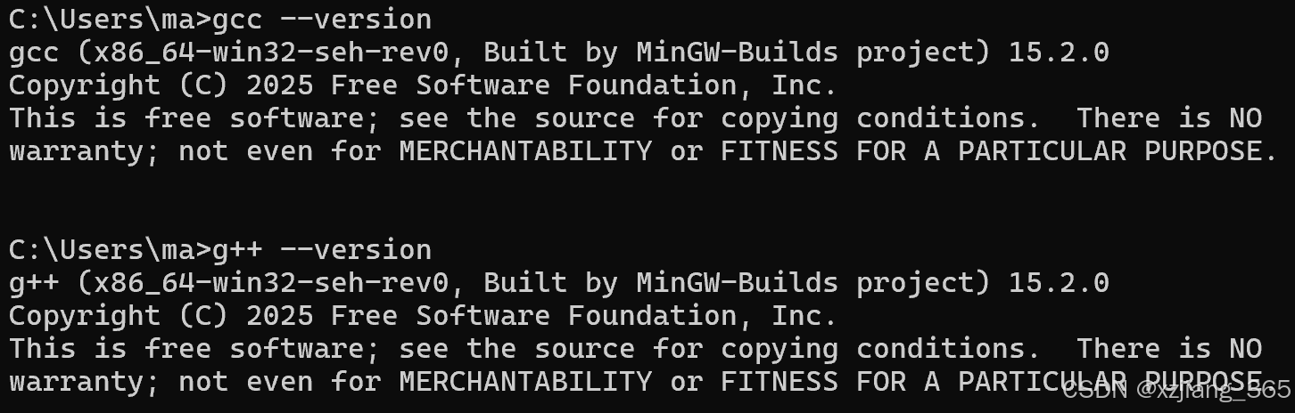 如果看到类似下面的输出(版本号可能不同),说明 MinGW 已安装且配置好环境变量:
