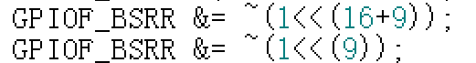 GPIOF_BSRR &= ~(1<<(9));