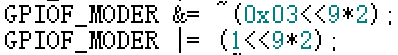 GPIOF_BSRR |= (1<<(16+9));