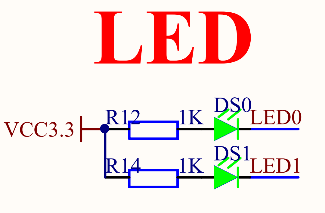 查看原理图可知设置低电平灯亮