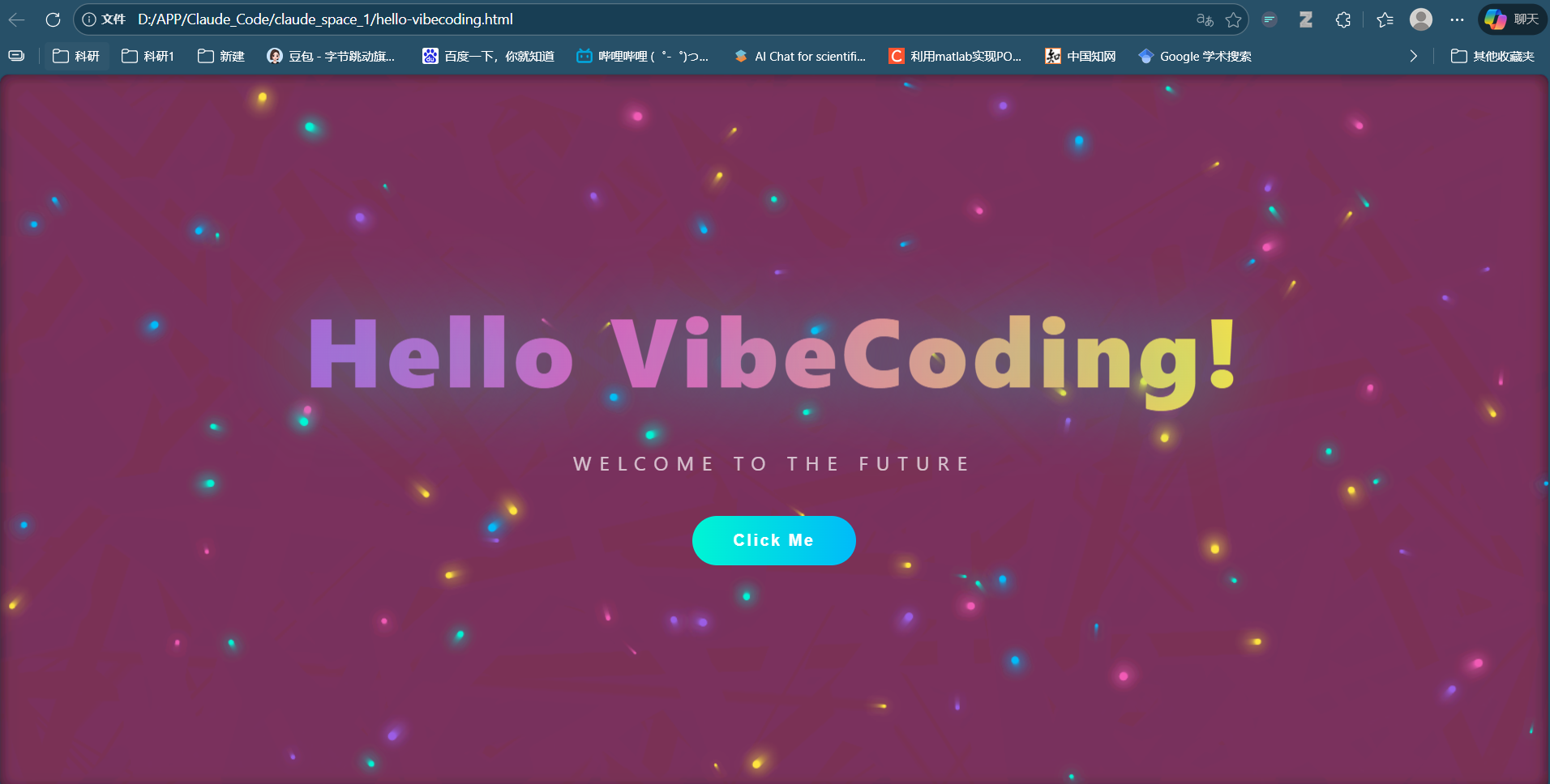 请帮我创建一个可视化的"Hello VibeCoding!"可以在网页打开的酷炫的前端页面。