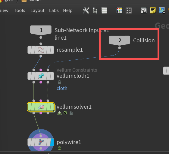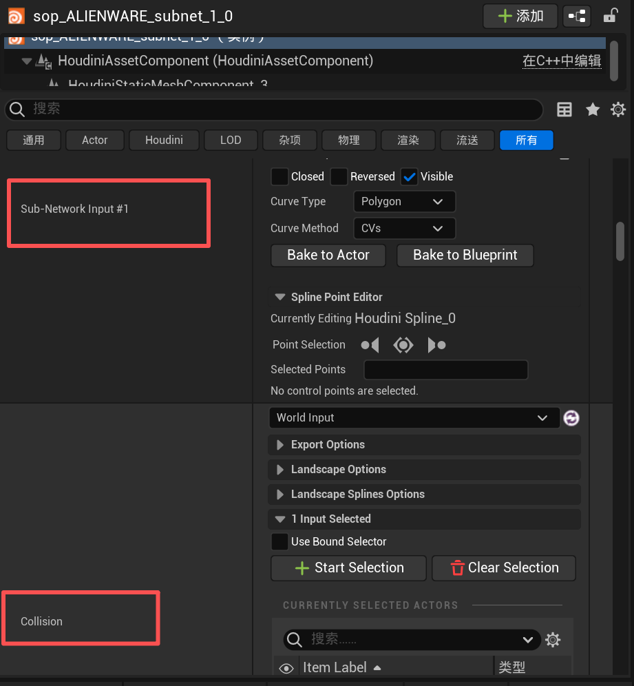 接下来,进图我们的HDA,我们可以看到下图会多一个Collision的输入端口,连接到模拟的碰撞端口上去