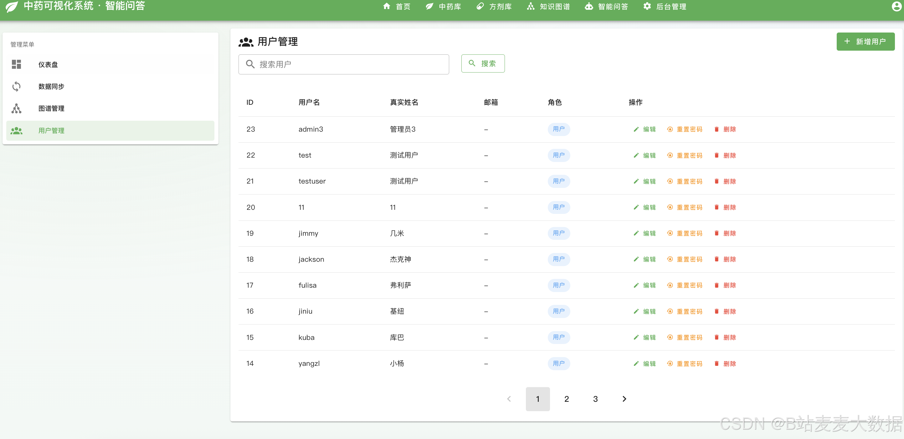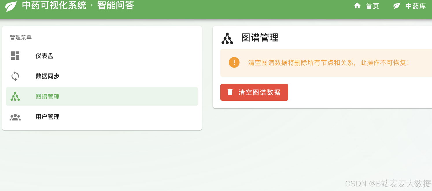 │ │ │ 知识图谱 │ 药材百科 │ 方剂分析 │ 用户中心 │ 数据管理 │ │ │