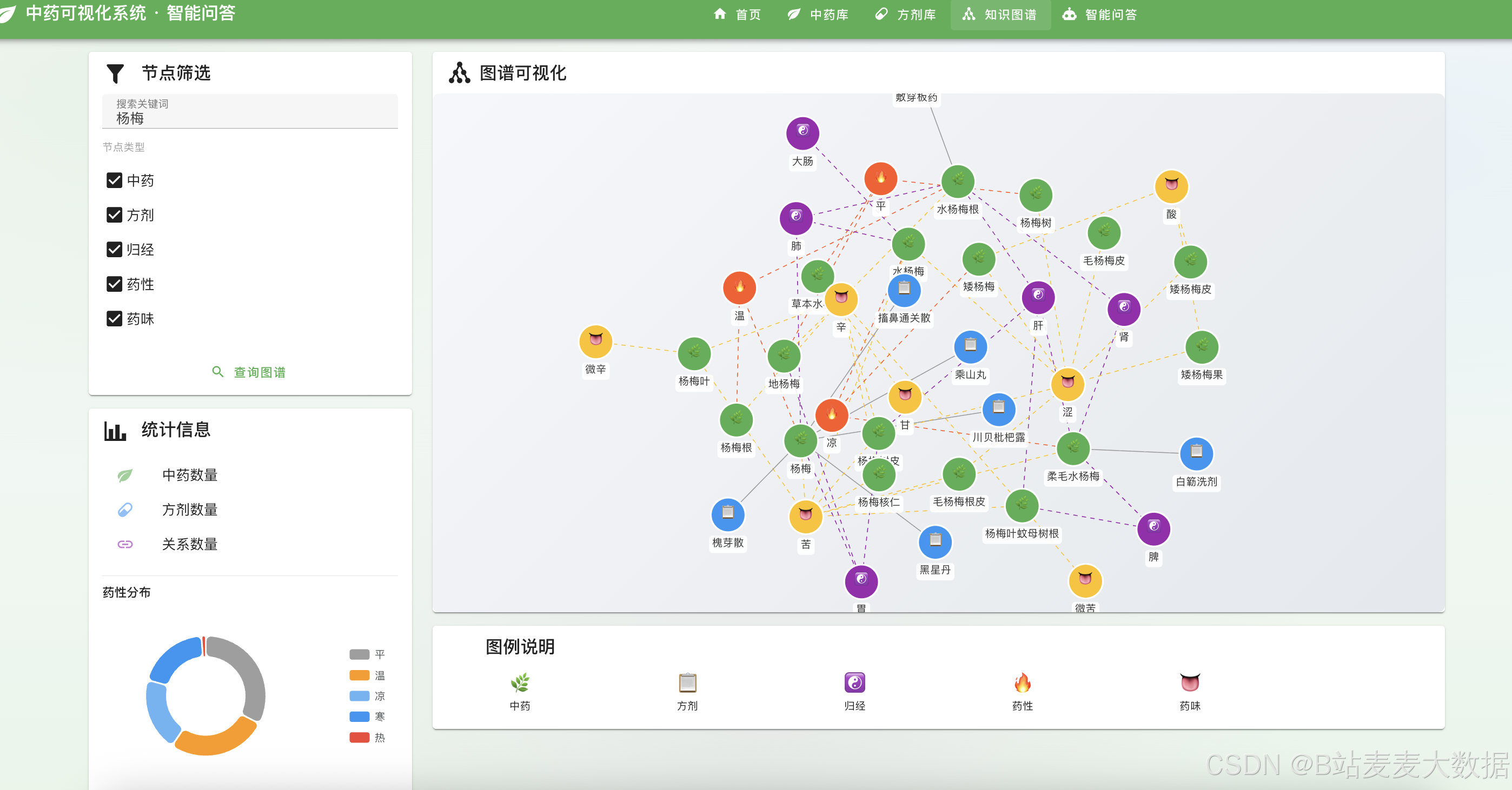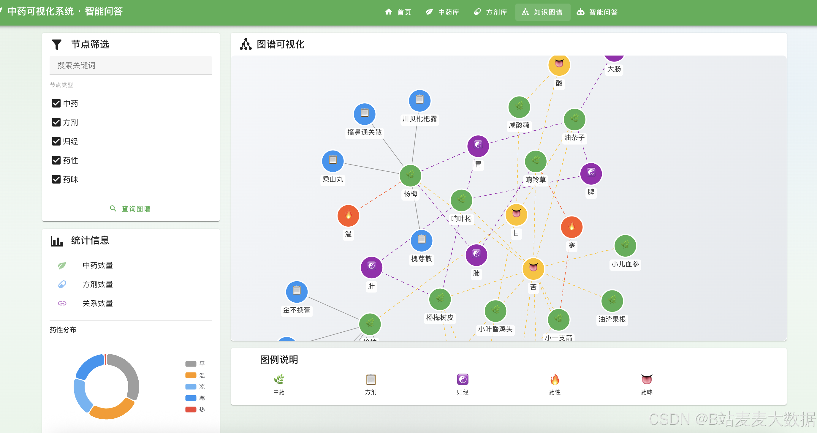 │ ✅ 知识图谱可视化 - 中药、方剂、归经、药性等实体关系直观展示 │