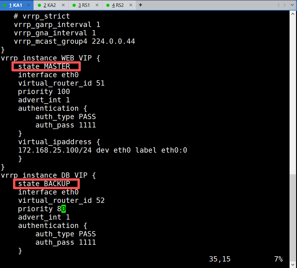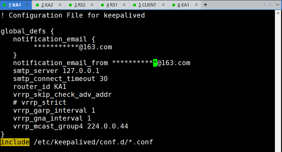 [root@KA1 ~]# vim /etc/sysconfig/keepalived