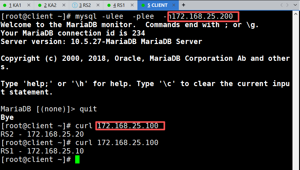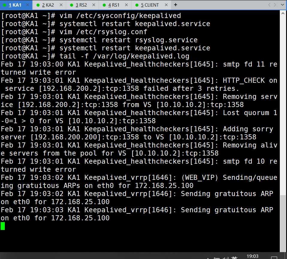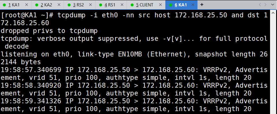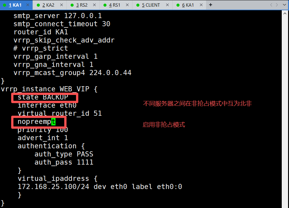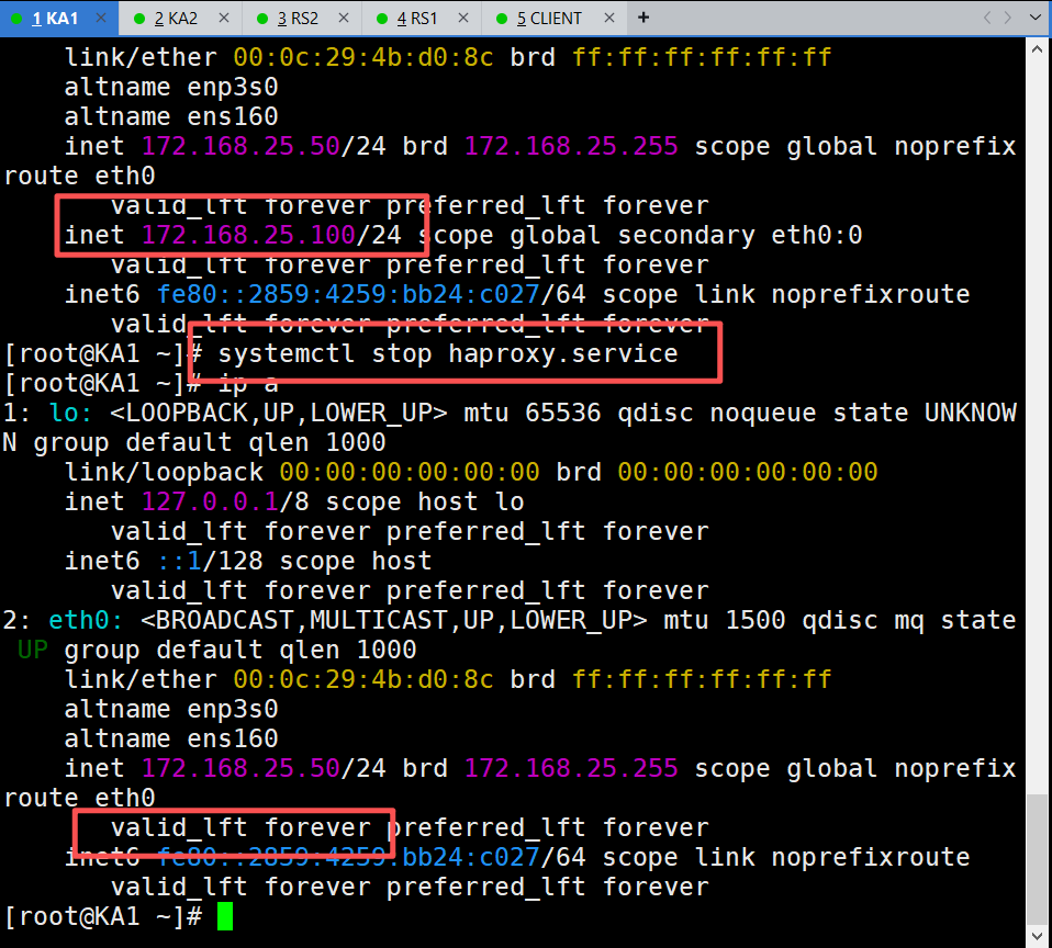 测试:停止KA1服务,再重启,VIP不会再漂移至KA1