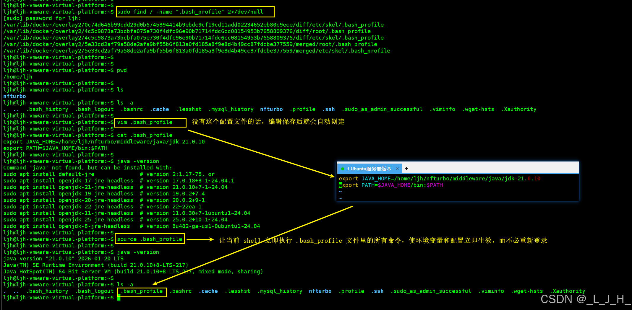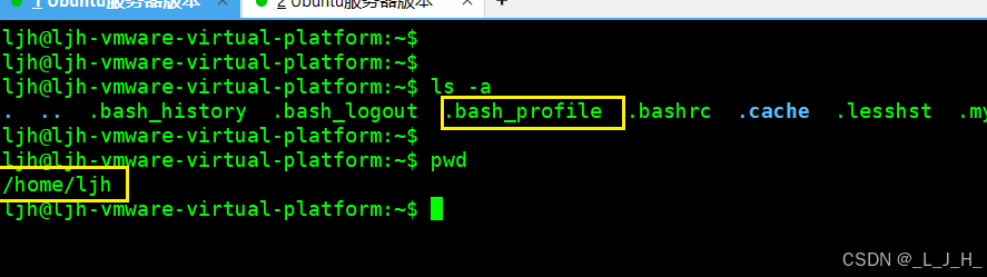 我当前的 /home/ljh 这个目录是没有这个.bash_profile配置文件的,可以自己创建一个,用于我当前登录用户 ljh 可以使用。