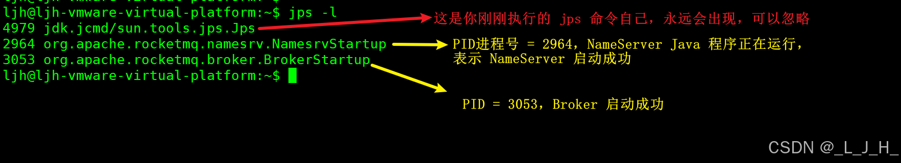 mqnamesrv 和 broker 都有进程,表示都启动成功了