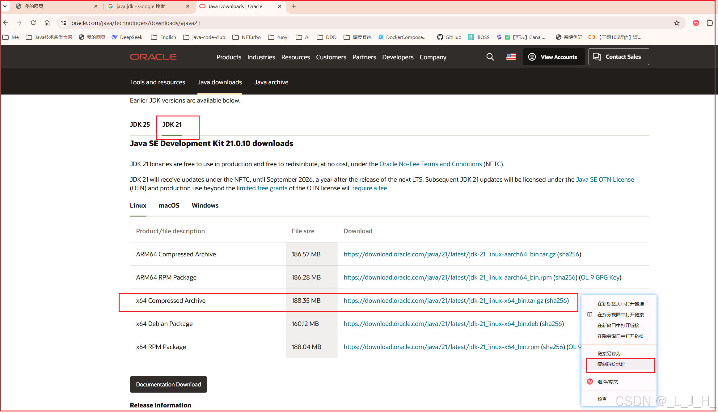 因为 rockermq 是依赖于java环境的,所以虚拟机也需要有java环境,现在安装个 jdk 21.