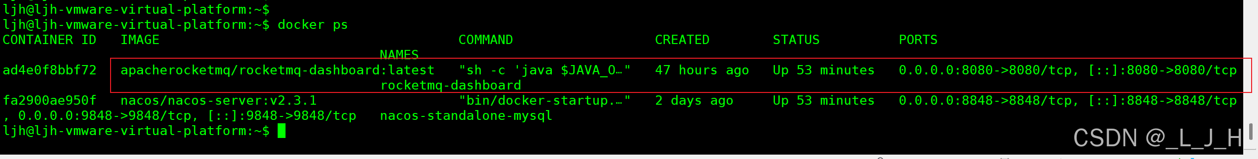 1-3:直接看容器进程 docker top rocketmq-dashboard