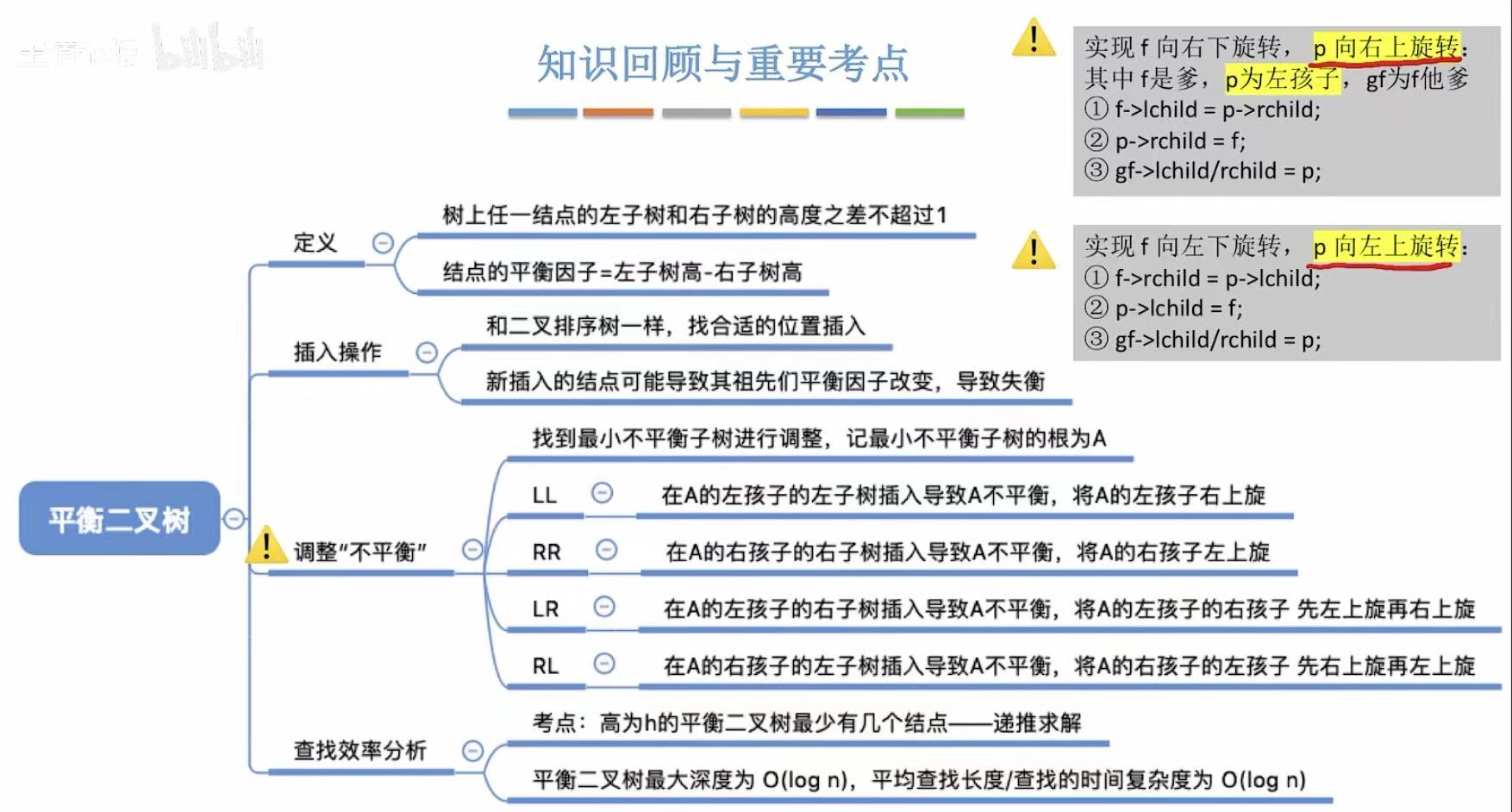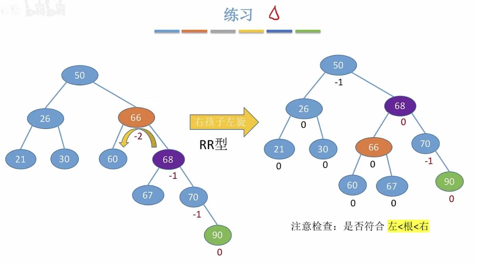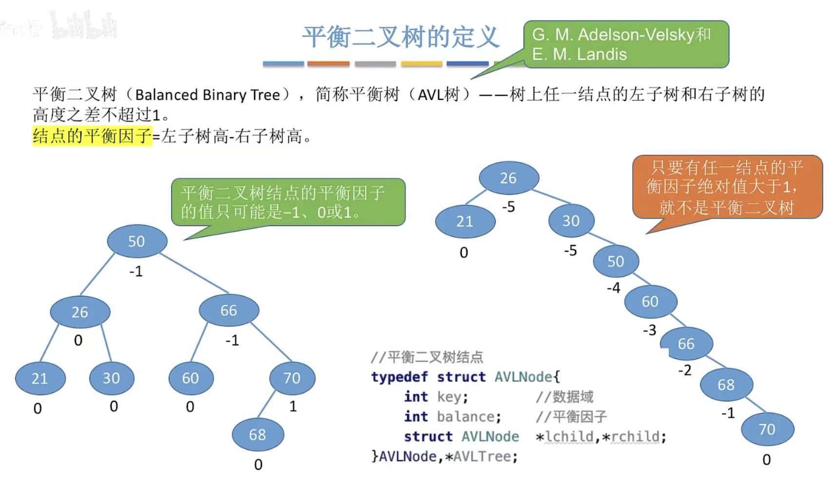 - 平衡二叉树:树上任一结点的平衡因子为-1、0、1.