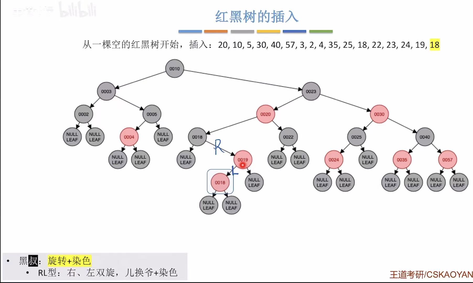 - 添加18:非根,为红色-->违反不红红-->黑叔-->RL型-->旋转+染色