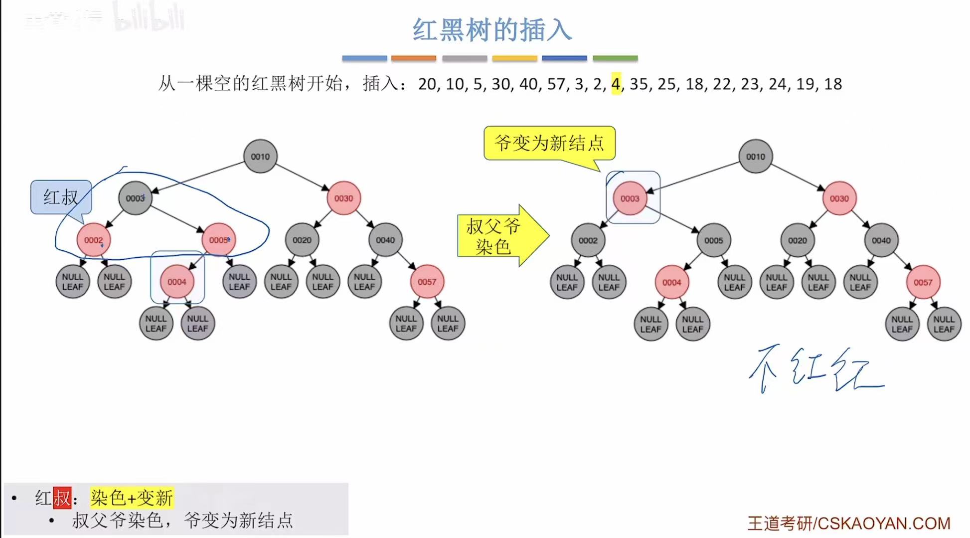 - 添加4:非根,为红色-->违反不红红-->红叔-->染色+变新