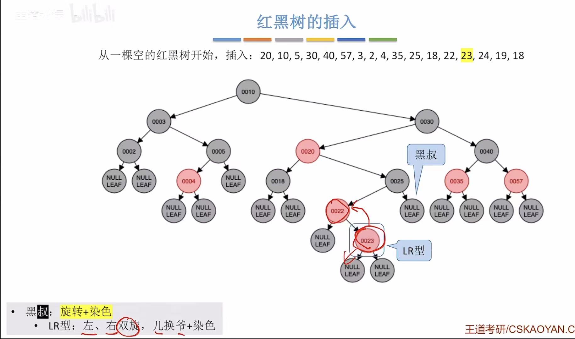 - 添加23:非根,为红色-->违反不红红-->黑叔-->LR型-->旋转+染色