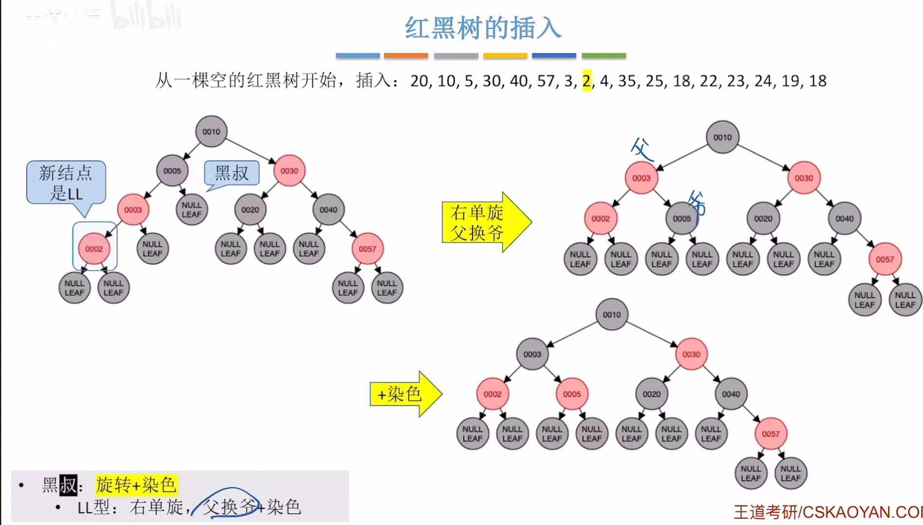 - 添加2:非根,为红色-->违反不红红-->黑叔-->LL型-->旋转+染色