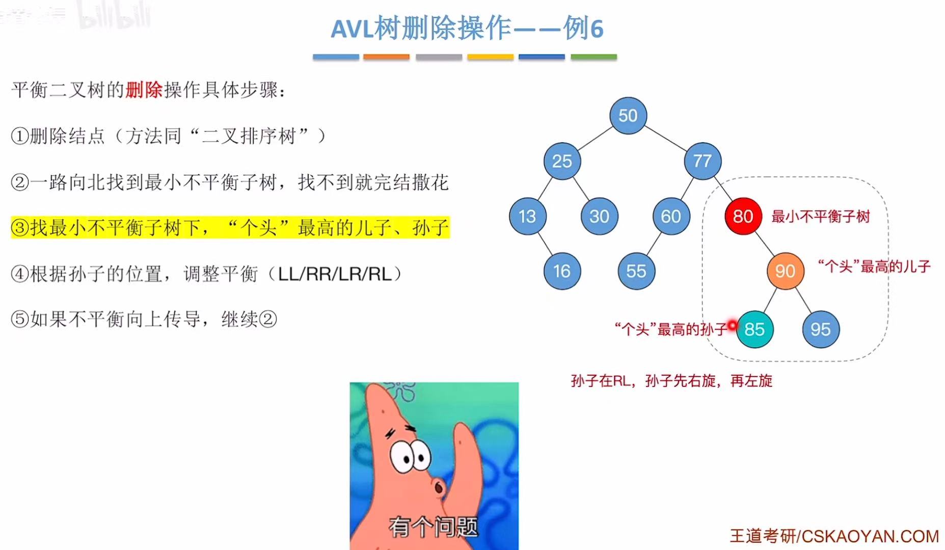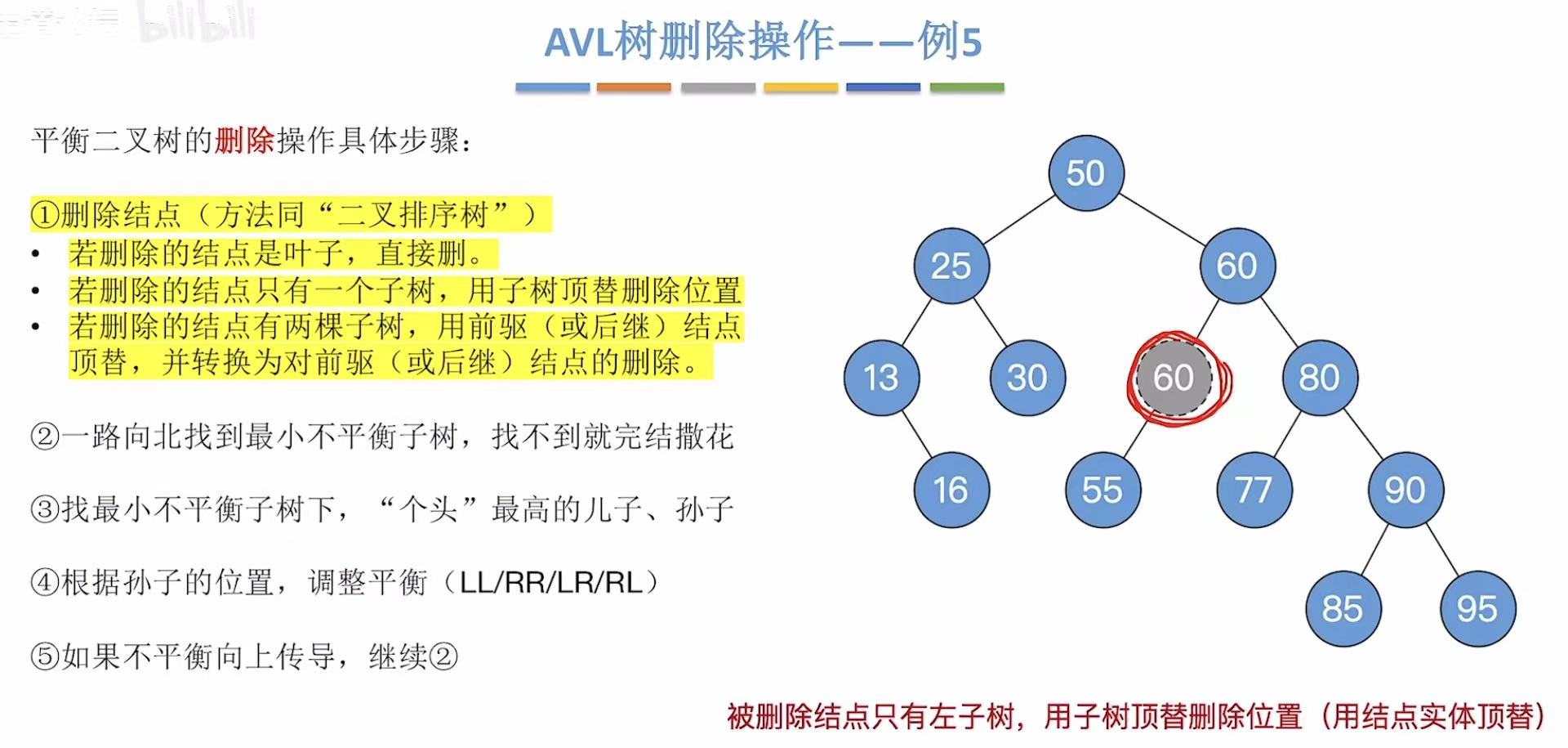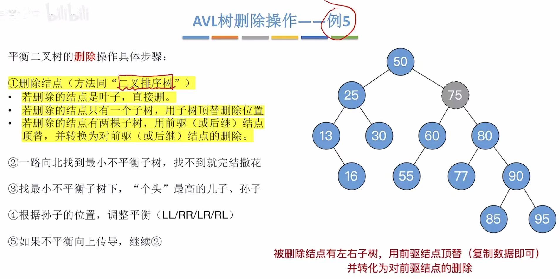 删除操作和插入操作相同,都会使得二叉树不平衡,所以关键点都是需要将二叉树最后恢复平衡状态。